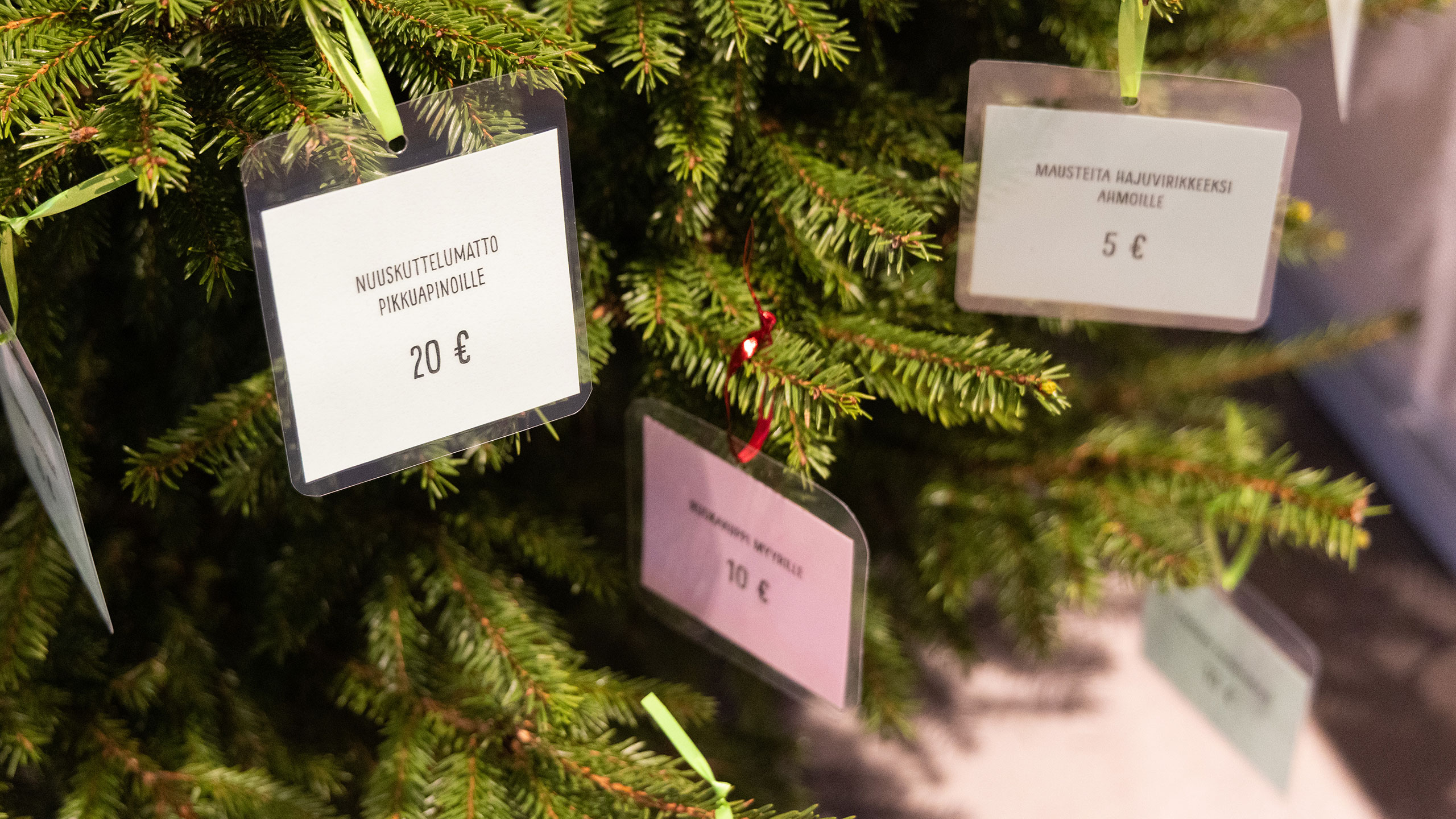 Joulukuusi täynnä lahjatoiveita eläimille