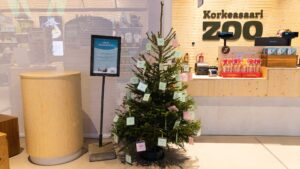 Joulukuun alussa avautuneeseen Korkeasaaren uuteen sisäänkäyntirakennukseen on saapunut kaksi joulukuusta. Kuusista suuremman ovat koristelleet Kalasataman koululaiset ja pienempään kuuseen on ripustettu Korkeasaaren eläinten joululahjatoiveita. Molemmat kuuset ovat jo loihtineet ympärilleen hyvää mieltä!