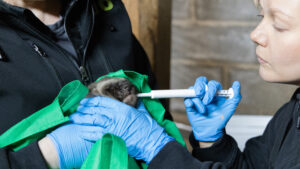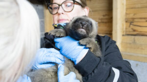Nyt hoitajat uskaltavat jo hengittää hieman vapaammin, sillä ahmanpentujen “neuvolakäyntikin” on takana päin. Korkeasaaren eläinlääkärit punnitsivat pennut, antoivat niille matolääkkeet ja laittoivat mikrosirut. Samalla selvisi myös pentujen sukupuolet: kaksi urosta ja yksi naaras. Hoitajat ovat jo miettineet pennuille nimiä, jotka alkavat tänä vuonna S-kirjaimella.