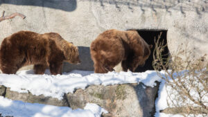 ”Tänä talvena karhut eivät nukkuneet pitkiä yhtenäisiä unijaksoja. Näimme pesäkamerasta, että ne nousivat usein jaloittelemaan ja veimme niille kevyttä ruokaa. Ne ovat kurkistaneet uloskin, mutta palanneet takaisin nukkumaan. Karhuilla on nyt mahdollisuus valita oman rytminsä mukaan levon ja ulkoilun väliltä”, kertoo eläintenhoitaja Susan Nuurtila.